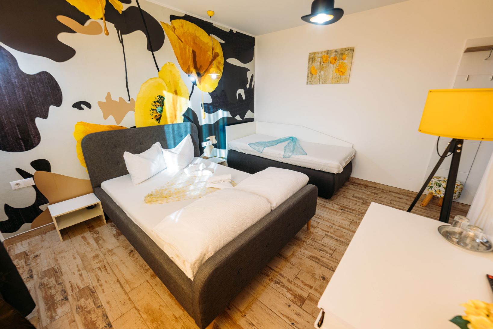 - 4 camere cu un pat matrimonial (140/200) și 1 pat de 1 persoană (90/200)
